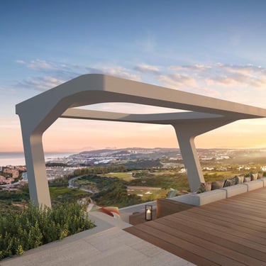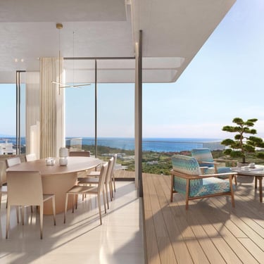 Set between the Mediterranean Sea and a world-class golf course, the development offers panoramic views stretching from Marbella to Gibraltar and the mountains of Morocco.