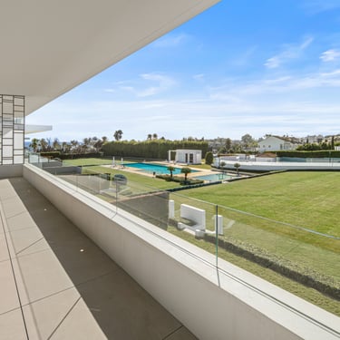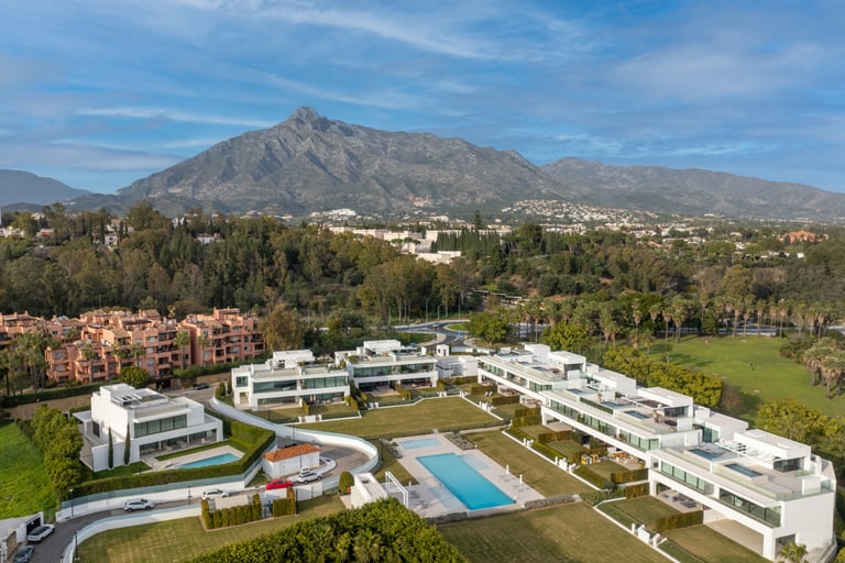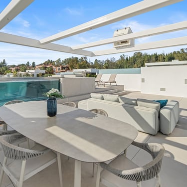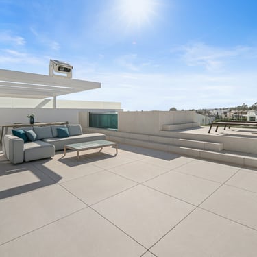 The rooftop terrace offers a private pool, lounge and dining areas, and panoramic views across the Golden Mile and the Mediterranean — an ideal setting for both relaxation and entertaining.